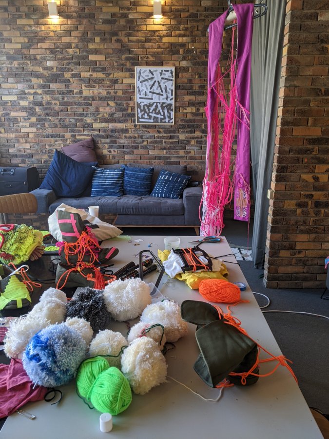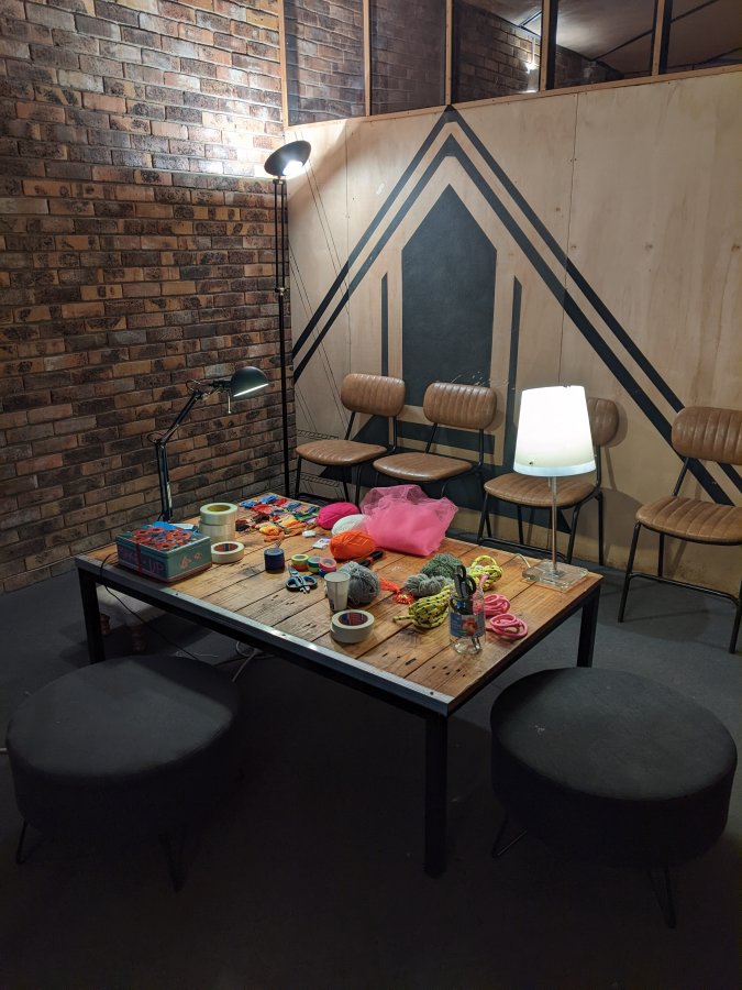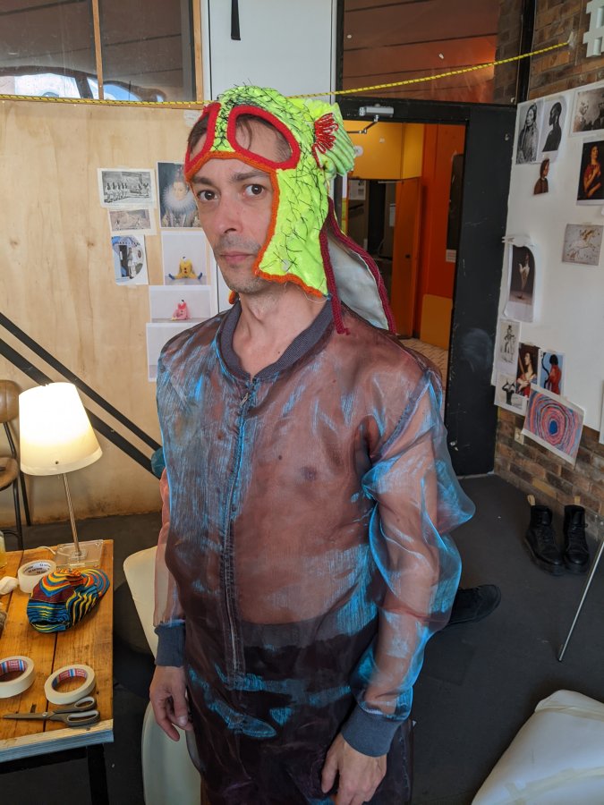 Atelier Kostüm Küstom Porté par le duo d’artistes Barbara Massart de la “S” Grand Atelier (Centre d’art brut et contemporain / Belgique) en collaboration avec le groupe Infecticide. Un atelier d’improvisation textile sur les 2 jours. Une mission commune : confectionner ensemble les costumes de scène d’Infecticide pour le concert du samedi soir.