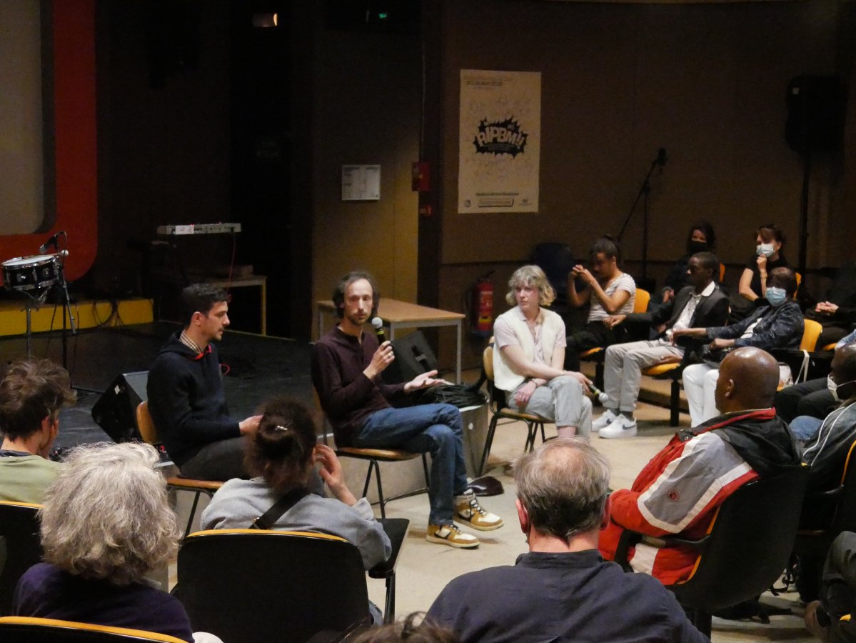 Discussion et projection de «L’esprit des Lieux / Métingue n°1», un film court de Jérôme Walter Gueguen sur une nouvelle forme de création collective imaginée par Léna Burger, La Belle Brute et Fantazio, un premier métingue en 2021 au Studio Rodolphe Burger à la ferme Klein Leberau (Alsace).