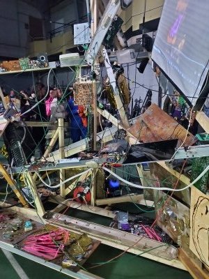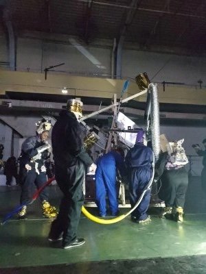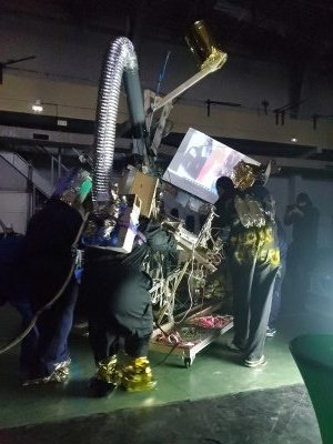 Tentative de décollage du satellite interstellaire fabriqué par Olivier Nourrisson (Collectif Encore Heureux), l’équipe du SAJ Les Trois Rivières et les usagers des structures partenaires.
