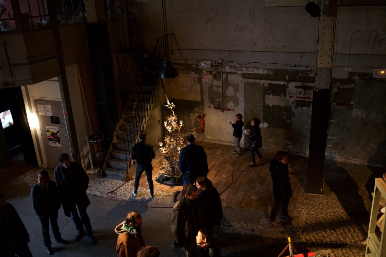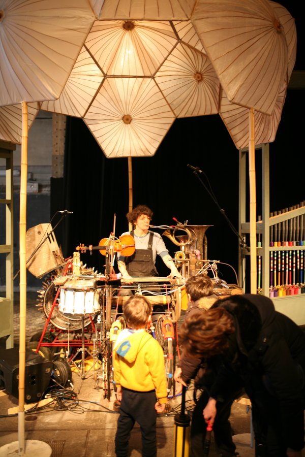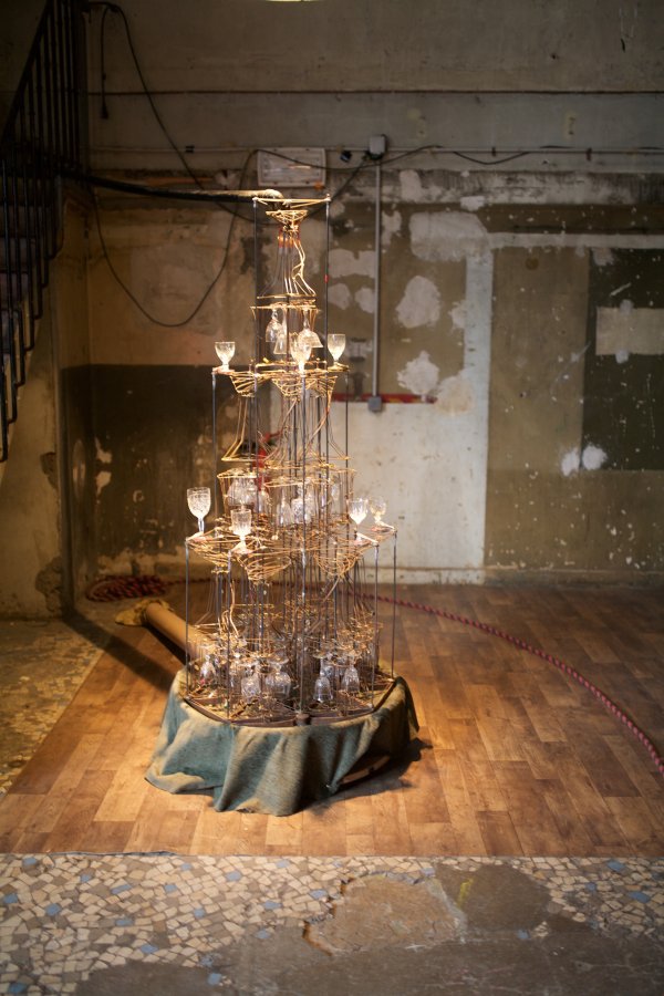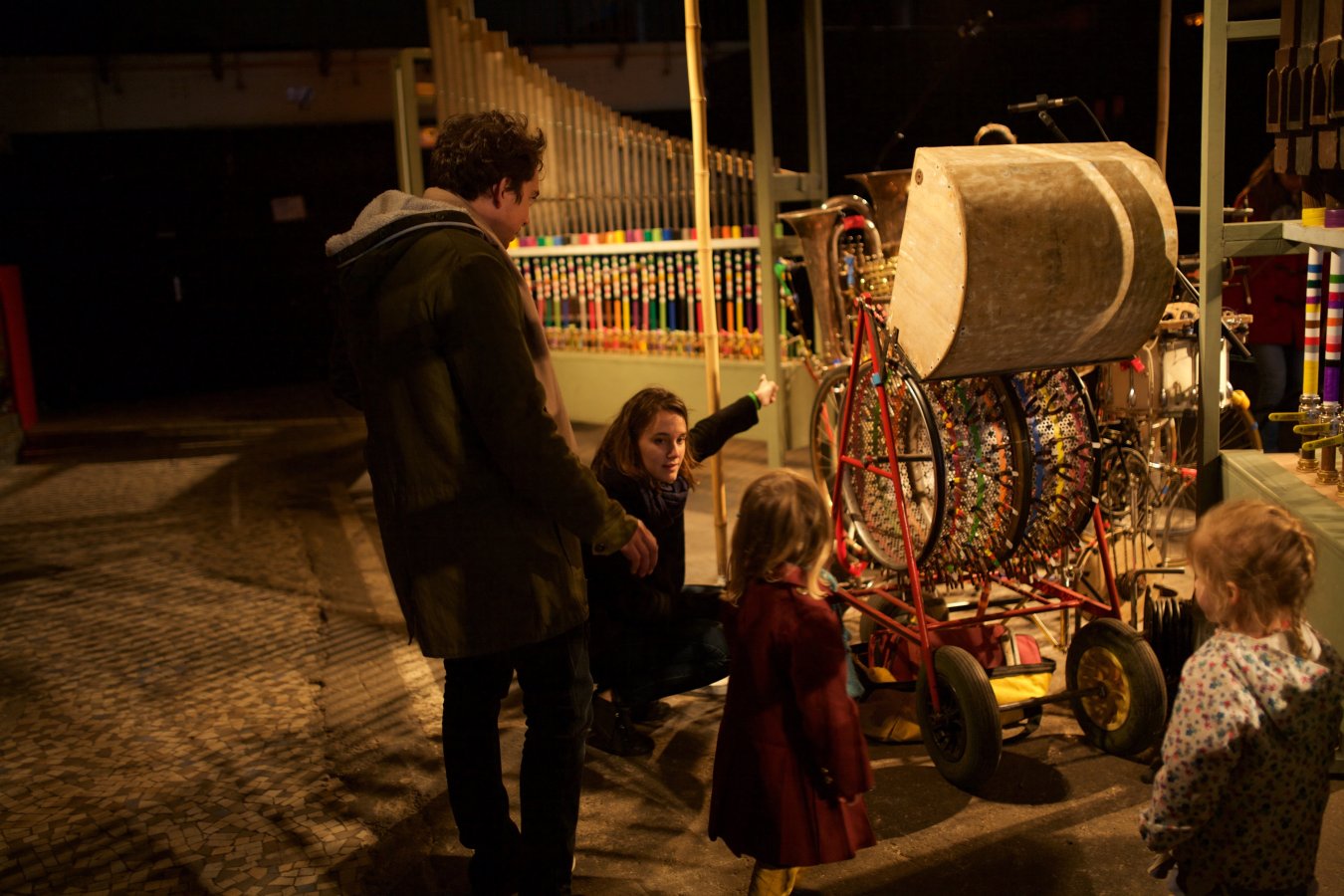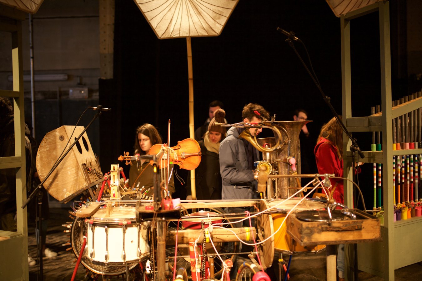 Entre art cinétique et art sonore, tous ses instruments et sculptures sont fabriqués de ses mains à partir d’objets de récupération : roue de vélo, machine à écrire, chambre-à-air, etc. Conçus quasi comme des anti-automates, ses objets restent inertes sans les humains qui les activent. Humaniser la machine et/ou mécaniser l’humain : Sarah Kenchington s’occupe du chaînon manquant !