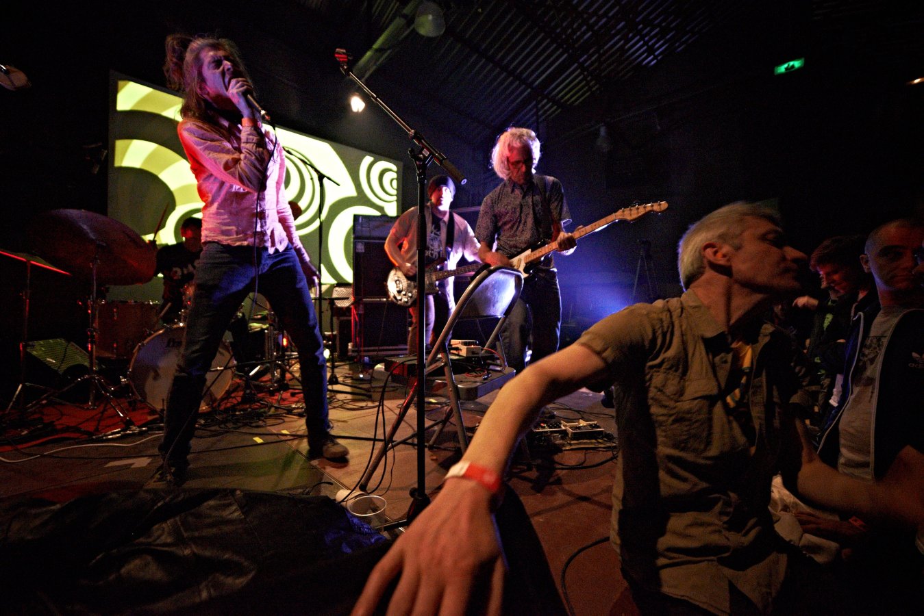 Formé par le guitariste Russell Smith en 1988, Terminal Cheesecake reste un des meilleurs groupes noise-rock britanniques qu'ait compté la décennie 90. Malheureusement trop souvent mésestimés à cause d'une fâcheuse tendance à ne pas beaucoup sortir de Londres et une fin de carrière en queue de poisson, Terminal Cheesecake est pourtant un groupe essentiel. Parti d'un son punk orageux et chaotique, le groupe s'oriente rapidement vers un rock inquiétant à forte tendance dub-expérimental et très très psychédélique ! Leur décalage par rapport aux groupes hardcore de l'époque et leur ironie corrosive les rapprochent indubitablement des hallucinés Butthole Surfers. La carrière de Smith ne débute cependant pas avec Terminal Cheesecake puisqu'il a déjà fortement marqué la scène anglaise de dance-pop en participant aux projets A.R. Kane et M/A/R/R/S, à qui on doit le tube d'early acid-house "Pump up the volume". Dans les années 90, Terminal Cheesecake fait partie intégrante de la scène underground anglaise noise-grind, aux côtés de Skullflower (que Smith rejoindra par la suite), God, Godflesh, Loop et Napalm Death. Cinq albums sortiront sur les labels Wiiija, Pathological ou encore World Serpent (Coil, Nurse With Wound, Current 93…). Le groupe interrompt brutalement sa carrière en 1995 et c'est seulement à l'été 2013, suite à la demande du festival Supernormal (Oxfordshire) et l'excitation d'un nouveau public plus jeune, que Russel Smith décide de remonter le groupe aidé de Neil Francis, chanteur du groupe Gnod et du batteur d'origine John Jobbagy. Cette première performance à Paris (à l'époque, seule une date à Nancy est organisée) s'annonce sauvage.
