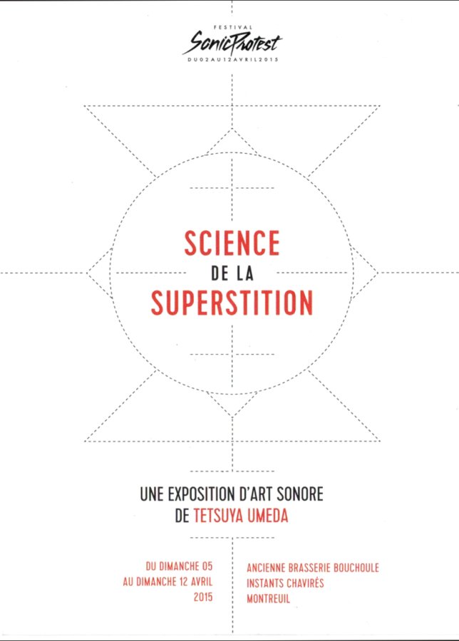 Pendant Sonic Protest, du 5 au 12 avril 2015, Tetsuya Umeda présentera sa première exposition monographique en Europe à la Halle Bouchoule, l’extension Arts Visuels des Instants Chavirés, partenaire historique du festival. Dans ce lieu à l’identité forte, cette exposition sera construite autour de la pièce-titre Science of Superstition, augmentée de micro-interventions dans l’espace de la galerie et tout autour du bâtiment, tel un jeu de piste qui conduit vers la Halle. Cette exposition sera ouverte par une performance inaugurale, le dimanche 5 avril 2015.