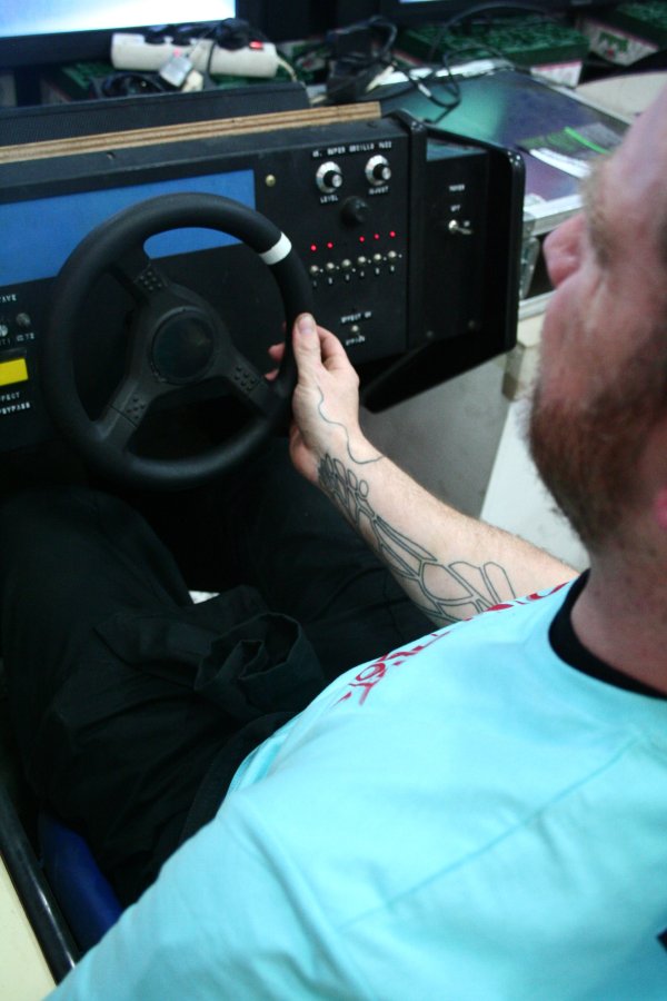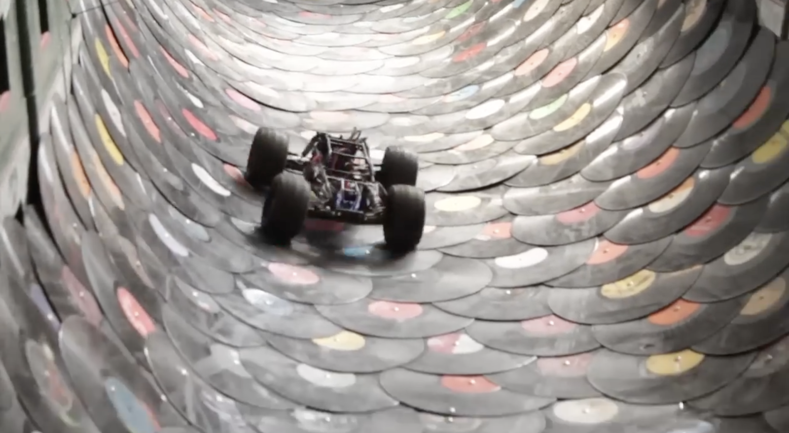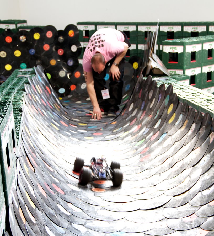 Présentée pour la première fois en France, cette installation de Lucas Abela utilise plus de 6000 vinyles comme matériau de construction d'un circuit pour voitures radio-guidées équipées de stylets qui scratchent la route et de caméras embarquées. Les voitures sont pilotées par les visiteurs via des bornes d'arcades dont les écrans montrent ce qui est filmé et joué par les voitures sur le circuit et non pas une réalité virtuelle programmée. Le joueur-conducteur se transforme en joueur-musicien puisque les consoles sont modifiées pour offrir des possibilités de manipulations sonores (synthèse, traitements).